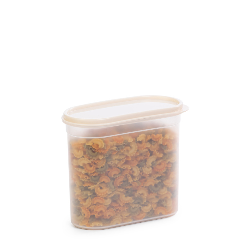 Хранение и использование различных сыпучих продуктов становится очень комфортным благодаря овальной форме ёмкости, которая занимает мало места на полке, тем самым помогая качественно организовать пространство. Прозрачность ёмкости позволяет видеть содержимое, а плотно прилегающая к корпусу крышка защищает содержимое от проникновения влаги и жучков.