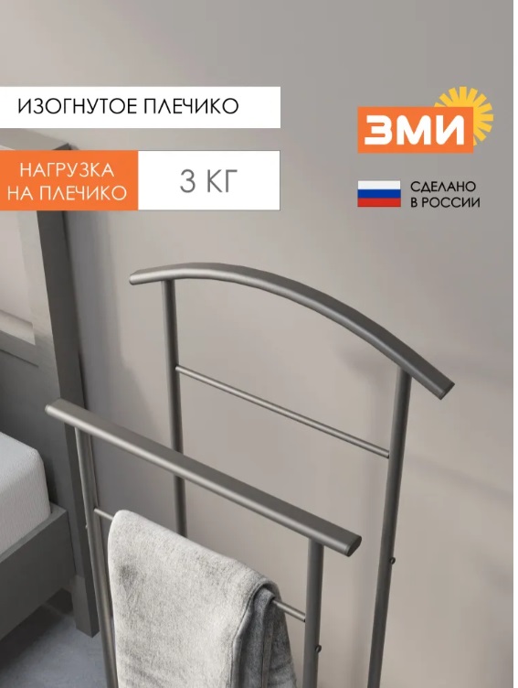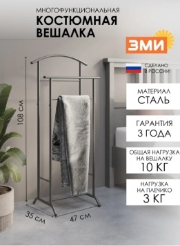 Костюмная вешалка “Стиль-3” в цвете графит — удобный и компактный аксессуар для аккуратного хранения одежды. Подходит для костюмов, рубашек, брюк и аксессуаров. Легкая металлическая конструкция устойчива, не занимает много места и отлично вписывается в интерьер спальни, гардеробной или офиса.