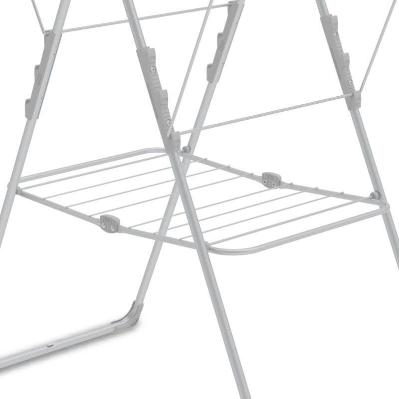 Складная напольная сушилка для белья с полкой. Компактная в сложенном виде и вместительная в развернутом. Подходит для использования в небольших помещениях.