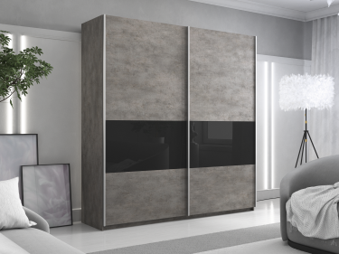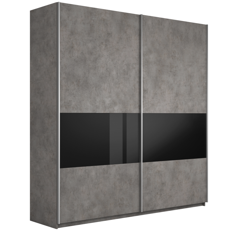 Шкаф-купе Широкий Прайм 2-х дверный 2200х2300х570 Бетон (ЛДСП Бетон/Черное стекло)
