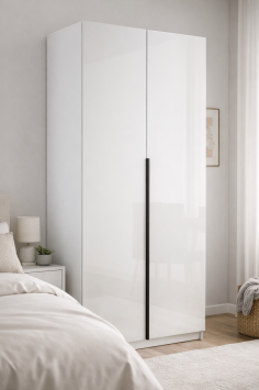 Шкаф оснащен удобной минималистичной ручкой, изготовленной из алюминия.