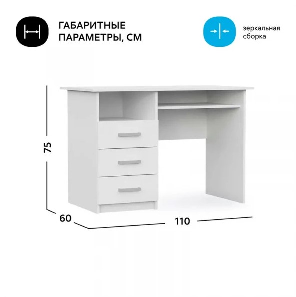 Функционал: сборка универсальная: тумба может быть расположена как с левой, так и с правой стороны