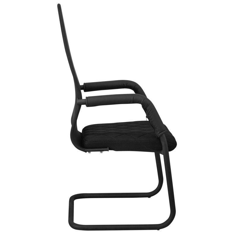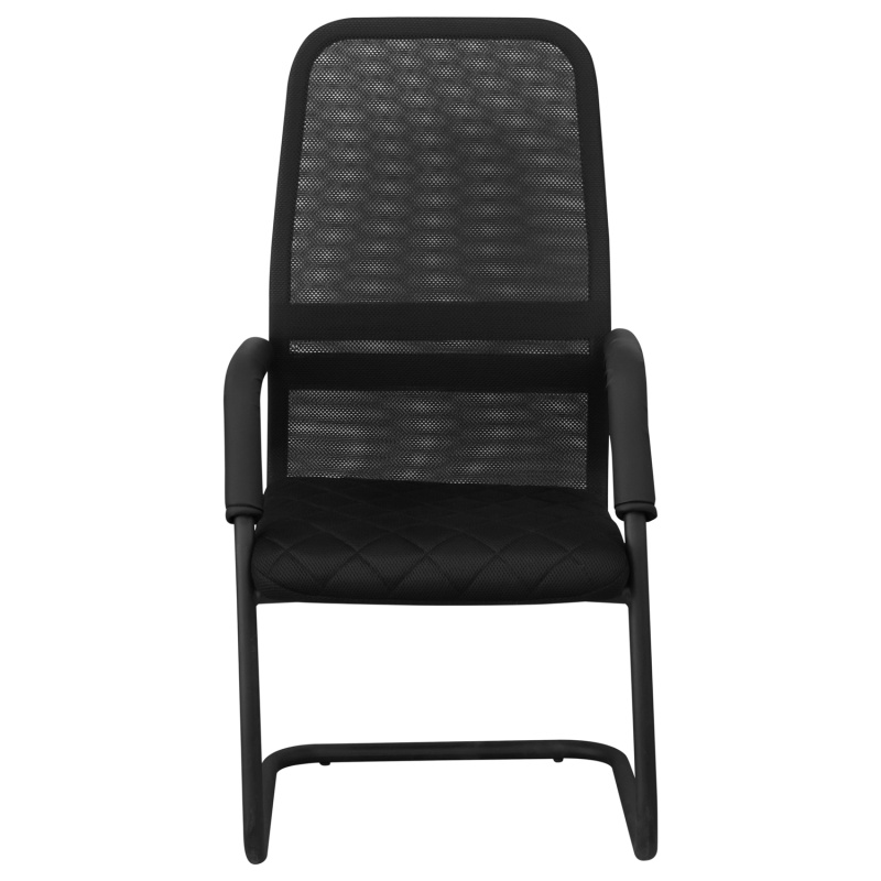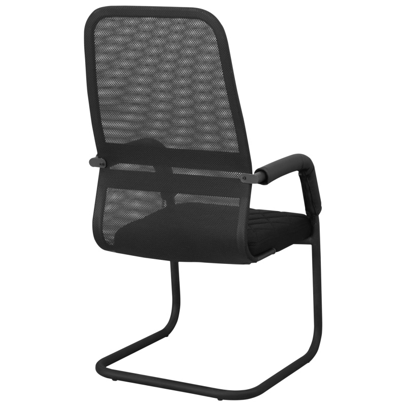 Спинка и сиденье выполнены из дышащей сетки, обеспечивающей комфорт даже при длительном использовании. Мягкие накладки на подлокотниках из кожзама создают дополнительное удобство. Стабильная рама обеспечивает надежную опору и долговечность эксплуатации. Лаконичный черный дизайн делает кресло универсальным для любого интерьера.