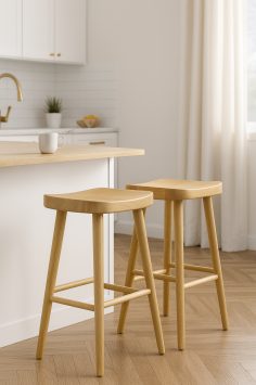 Барный стул B01 в натуральном цвете — лаконичный и стильный элемент интерьера. Выполнен из прочного дерева в светло-коричневом оттенке. Удобное сиденье и устойчивая конструкция обеспечивают комфорт в использовании. Отлично впишется в кухню, бар или современное кафе.