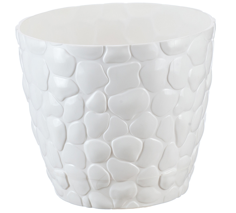 Кашпо КАМНИ — аккуратное прочное кашпо, стенки которого украшены объёмной текстурой, имитирующей морскую гальку. Кашпо КАМНИ отличается надёжностью, способствует нормализации полива комнатных растений, текстура кашпо продолжается на подставке, которая крепится к изделию, создавая единое целое, выпускается в трех актуальных оттенках: чайная роза, белый, коричневый ротанг.